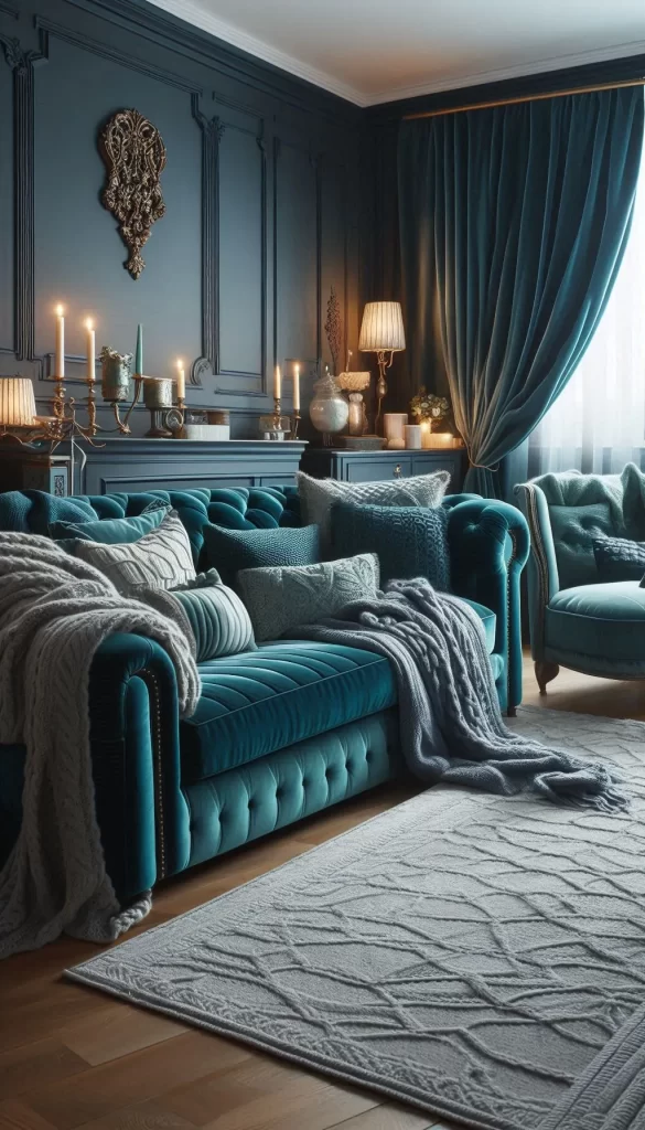 • Add velvet throw pillows or a velvet sofa to create a plush, inviting space.