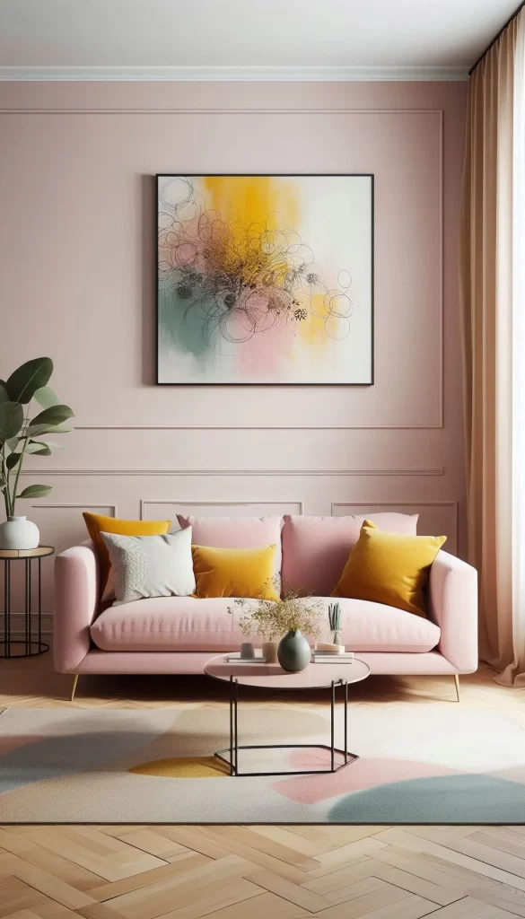 Pastels are timeless for spring, but in 2025, they’re making a big comeback with a modern twist. Think muted pinks, sage greens, and lavender, combined with bolder hues like deep teal or mustard yellow. These colors create a balanced, vibrant aesthetic perfect for rejuvenating your living room.