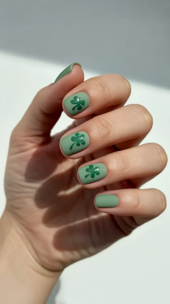 Matte green nail sticker sets give a soft, modern twist to St Patricks Day nails. These usually include solid matte stickers mixed with tiny clovers or dots. They look clean and stylish while still feeling festive.