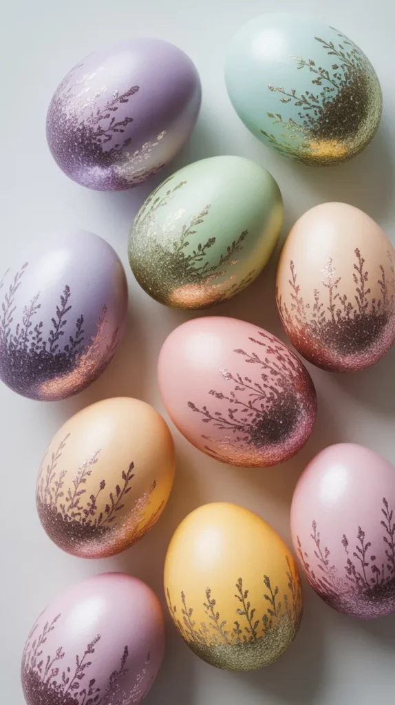 Add subtle glitter accents to painted eggs for sparkle without overpowering the design. Use gold or silver glitter along stripes or patterns.