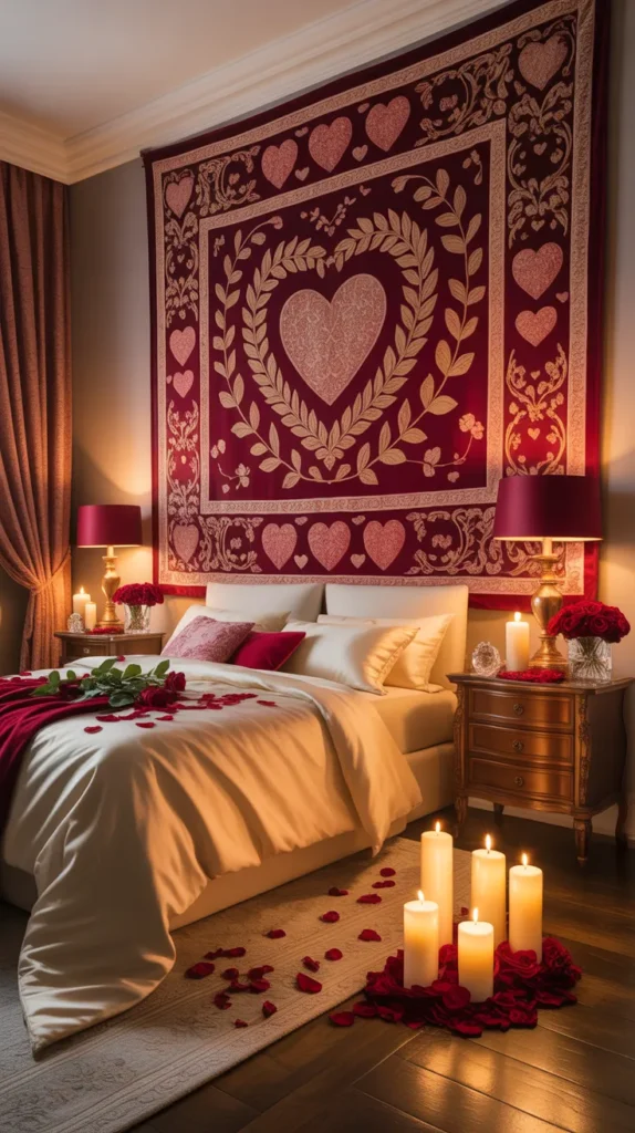 A fabric tapestry with love designs is a smart and affordable Valentine’s Day wall decor for bedroom spaces. Tapestries are easy to hang and can cover a large wall area, giving you more impact for less money. This makes them a cost-effective investment compared to buying multiple small frames. You can find romantic patterns, hearts, or love quotes that fit your style.