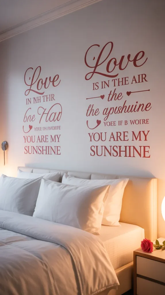 Romantic quote wall decals are a smart and affordable way to create strong Valentine’s Day wall decor for bedroom spaces. These peel-and-stick decals are easy to apply and remove, so you do not risk damaging your walls. This makes them a budget-friendly investment, especially for renters or anyone who likes to change decor often. You can choose love quotes, sweet messages, or simple words like “Love” or “Forever” to set the mood.
