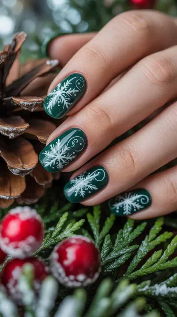 Combine the forest feel of Christmas with snowflake beauty. A deep green base with white or silver snowflakes creates a natural and festive look.